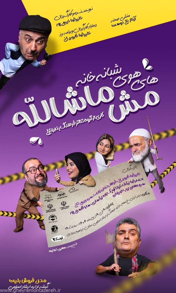 این نمایش هر شب رأس ساعت ۱۹ در سالن ابراهیم مرادی واقع در خیابان معلم بندر انزلی اجرا خواهد شد و فروش بلیط آن به صورت حضوری و در محل سالن انجام میپذیرد.